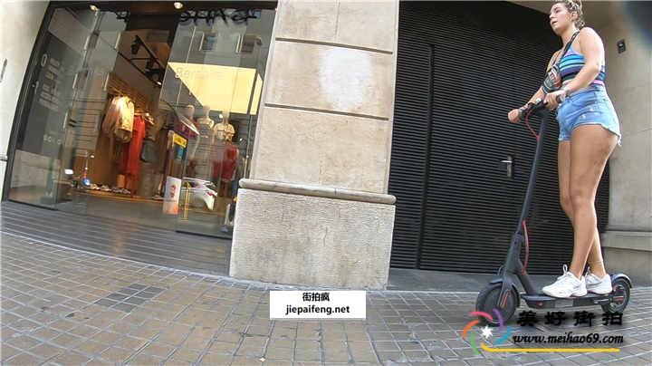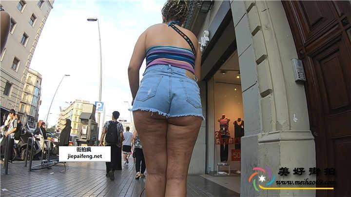 街拍蓝色牛仔热裤饱满大屁股洋妞[MP4/454M]