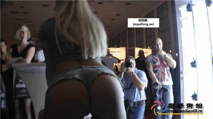 展会近拍牛仔热裤金发洋妞大胸翘臀[MP4/263M]