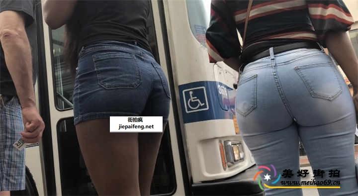 街拍牛仔热裤和紧身裤两个洋妞极品翘臀[MP4/161M]