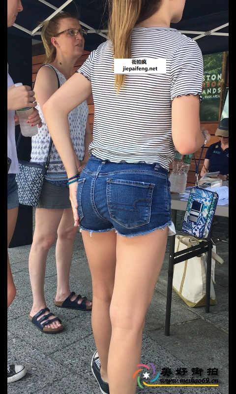 街拍牛仔热裤金发美眉极品饱满圆润翘臀[MP4/384M]