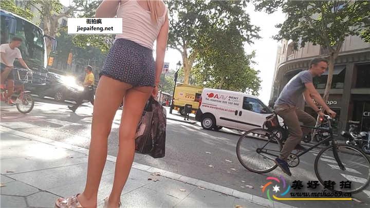 街拍圆点热裤饱满圆润翘臀金发美眉[MP4/217M]