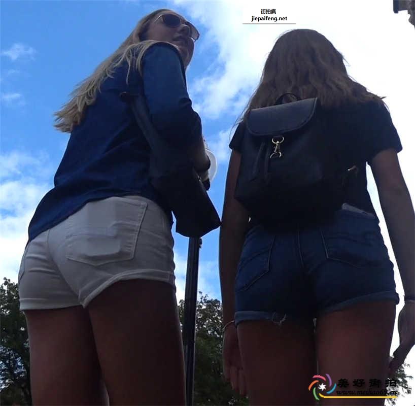 街拍两个牛仔短裤金发美眉圆润翘臀[MP4/609M]