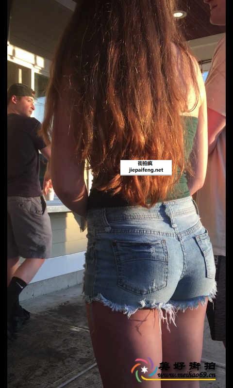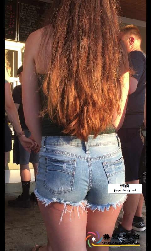 街拍蓝色牛仔热裤金发美眉性感圆润翘臀[MP4/487M]