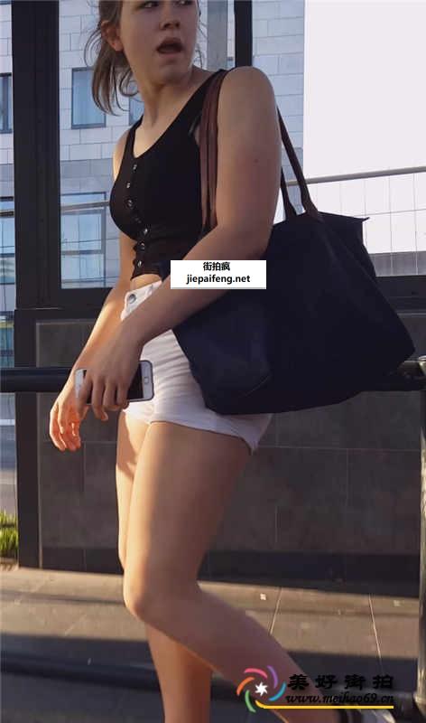 街拍白色紧绷短裤洋妞性感饱满圆臀[MP4/487M]