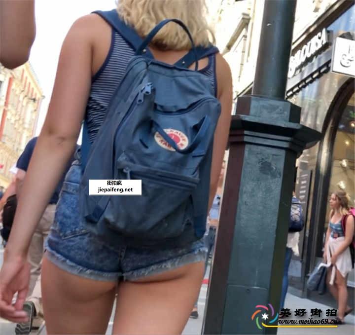 街拍蓝色牛仔热裤金发美眉饱满丰臀[MP4/150M]