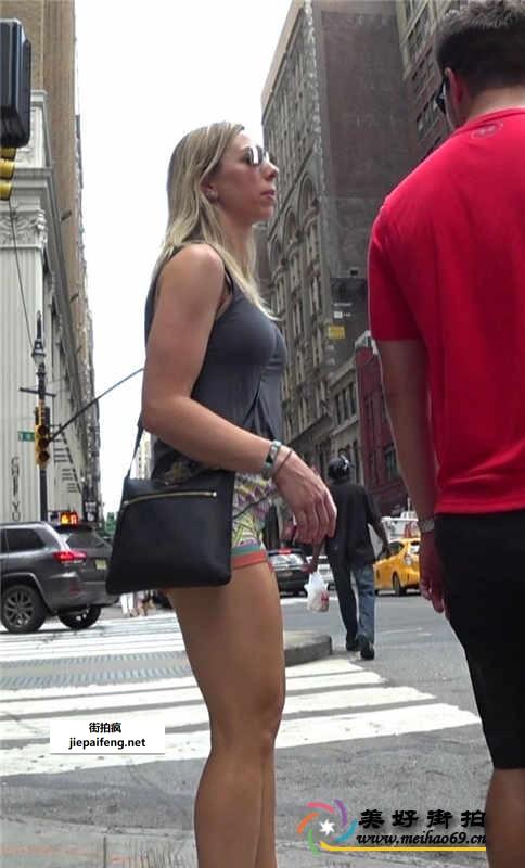 街拍紧身热裤金发洋妞性感饱满圆润翘臀[MP4/165M]