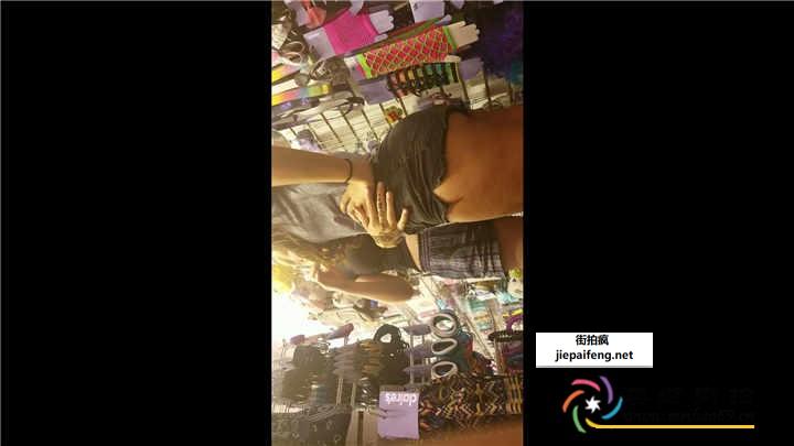 商店近拍绿色牛仔热裤饱满圆润翘臀洋妞[MP4/142M]