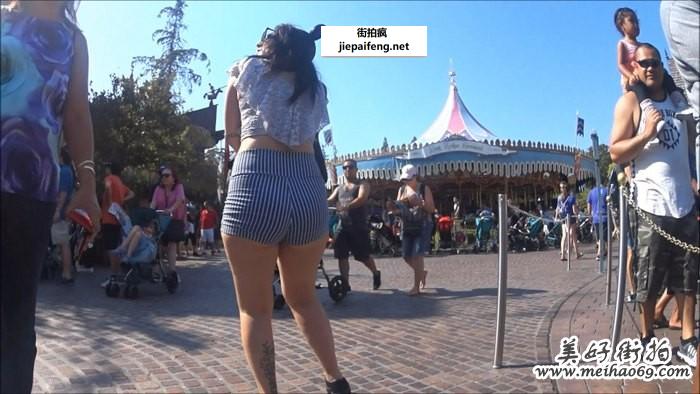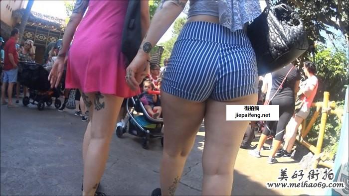 街拍紧绷条纹高腰短裤丰满大屁股洋妞[MTS/482M]