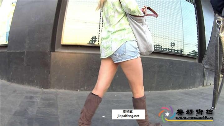 街拍蓝色牛仔短裤金发少妇[MP4/312M]