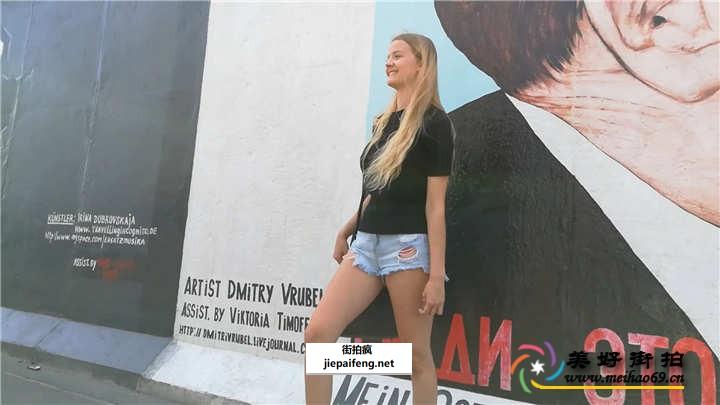 街拍蓝色牛仔热裤金发美眉极品白腿[MP4/316M]