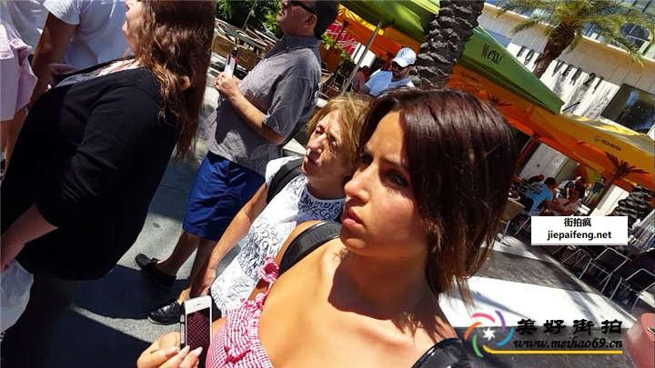街拍白色牛仔热裤丰满洋妞大胸圆润翘臀[MP4/119M]