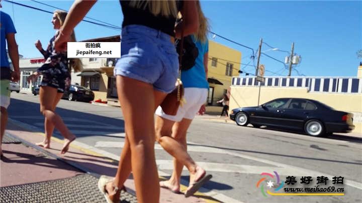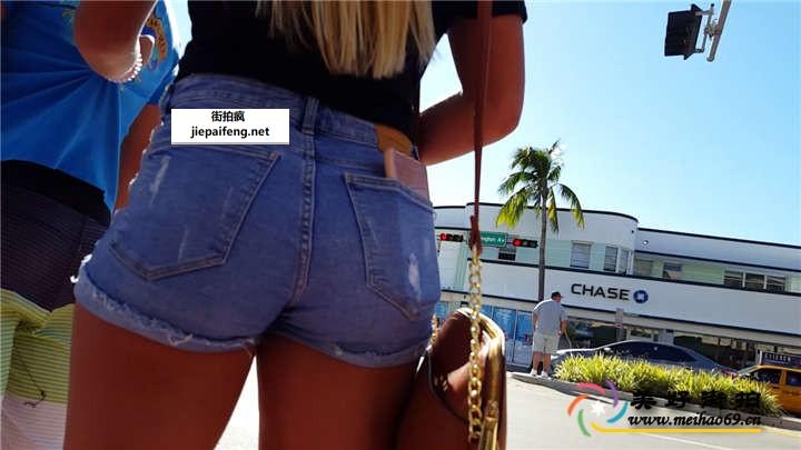 街拍漂亮金发美女蓝色牛仔热裤极品翘臀[MP4/113M]