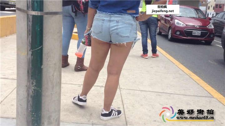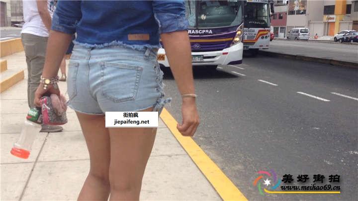 等公交车的蓝色牛仔热裤圆润翘臀美眉[MP4/102M]