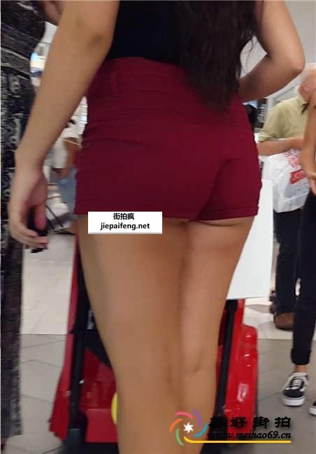 红色牛仔紧身热裤美眉极品饱满圆润翘臀[MP4/158M]