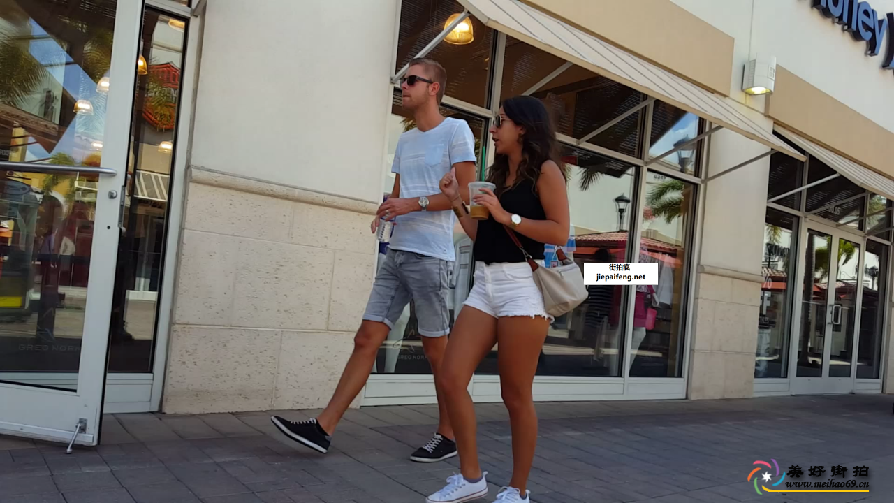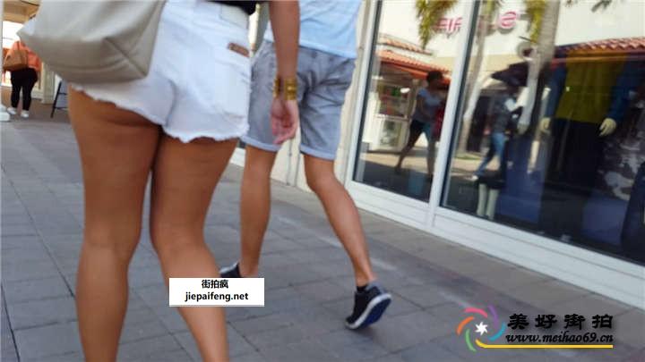街拍白色牛仔热裤洋妞饱满圆臀[MP4/198M]