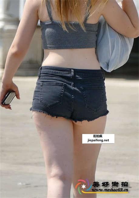 街拍黑色牛仔热裤金发墨镜洋妞饱满圆臀[MP4/471M]