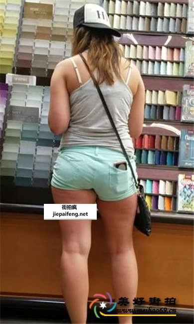 超市购物的金发洋妞绿色短裤饱满丰臀[MP4/346M]