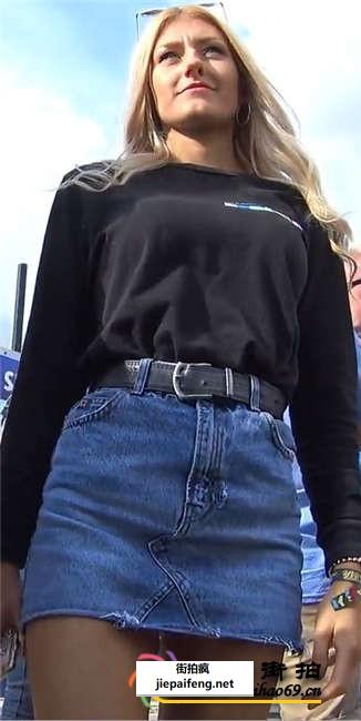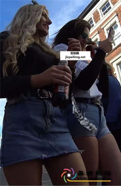街拍蓝色牛仔热裤和短裙两个金发洋妞[MP4/484M]