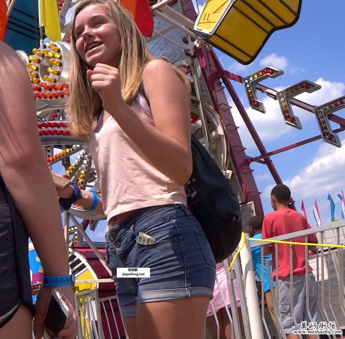 金发洋妞蓝色紧身牛仔短裤圆润翘臀[MP4/197M]