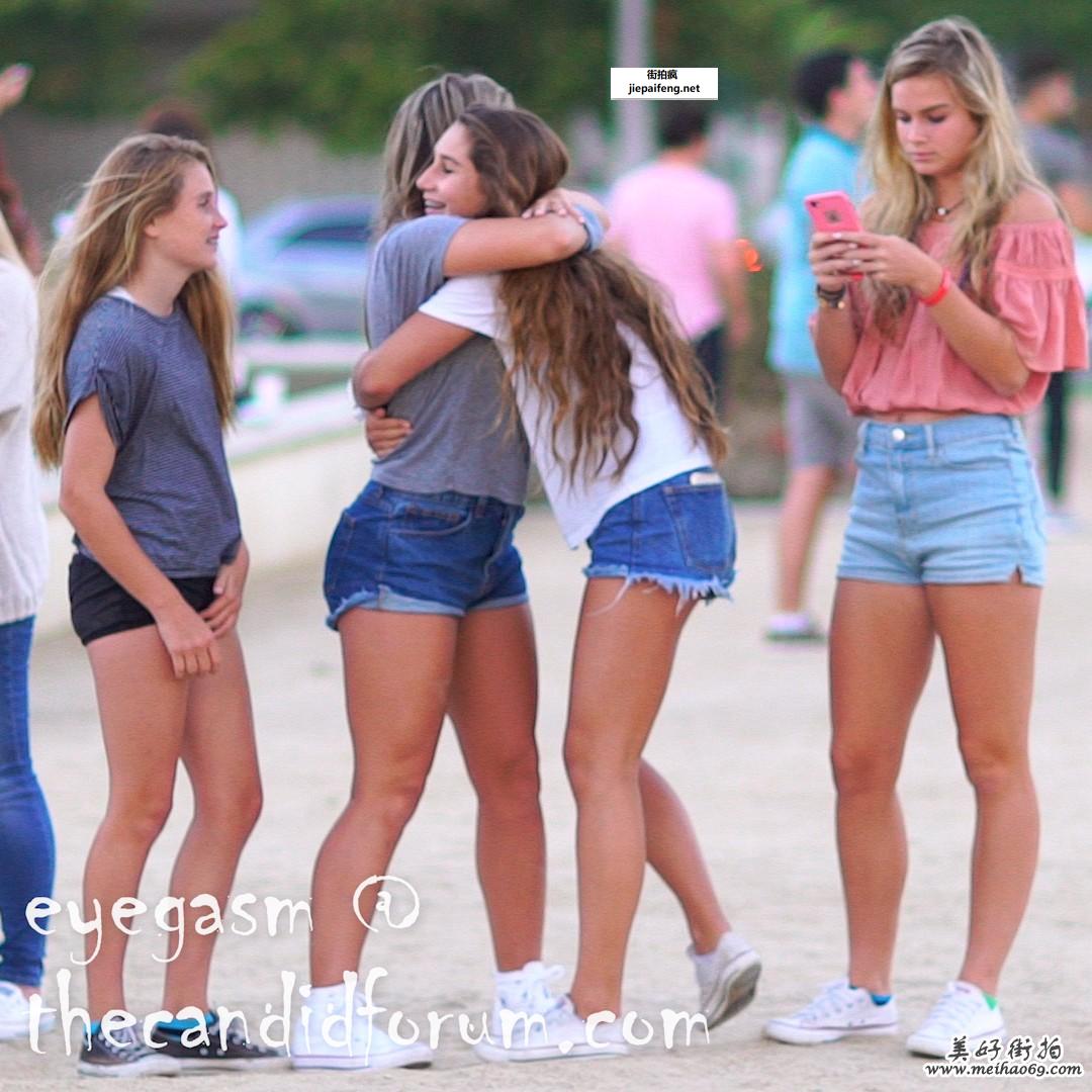 街拍蓝色紧身牛仔短裤金发漂亮洋妞[MP4/116M]