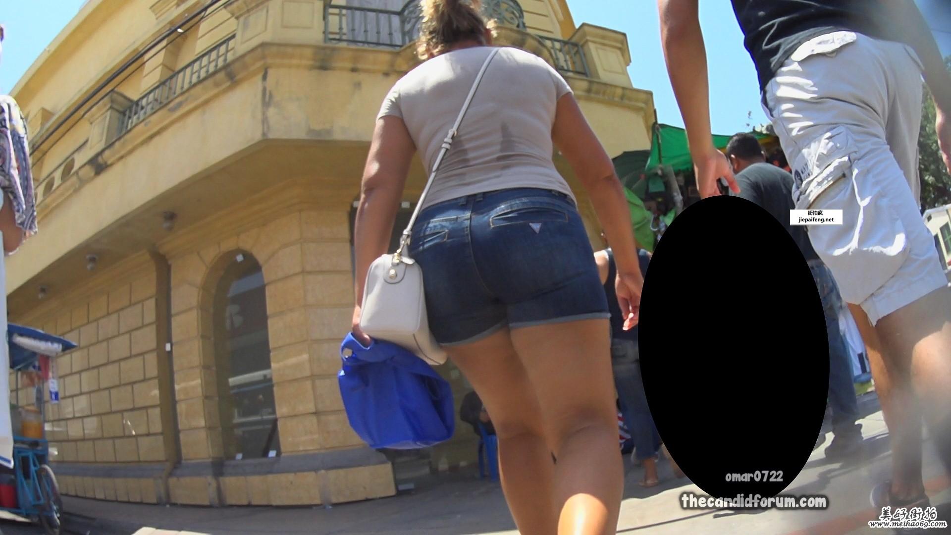 街拍蓝色紧身牛仔短裤少妇饱满圆润大屁股[MP4/176M]