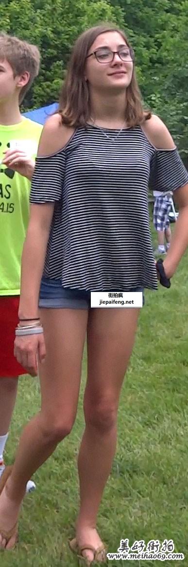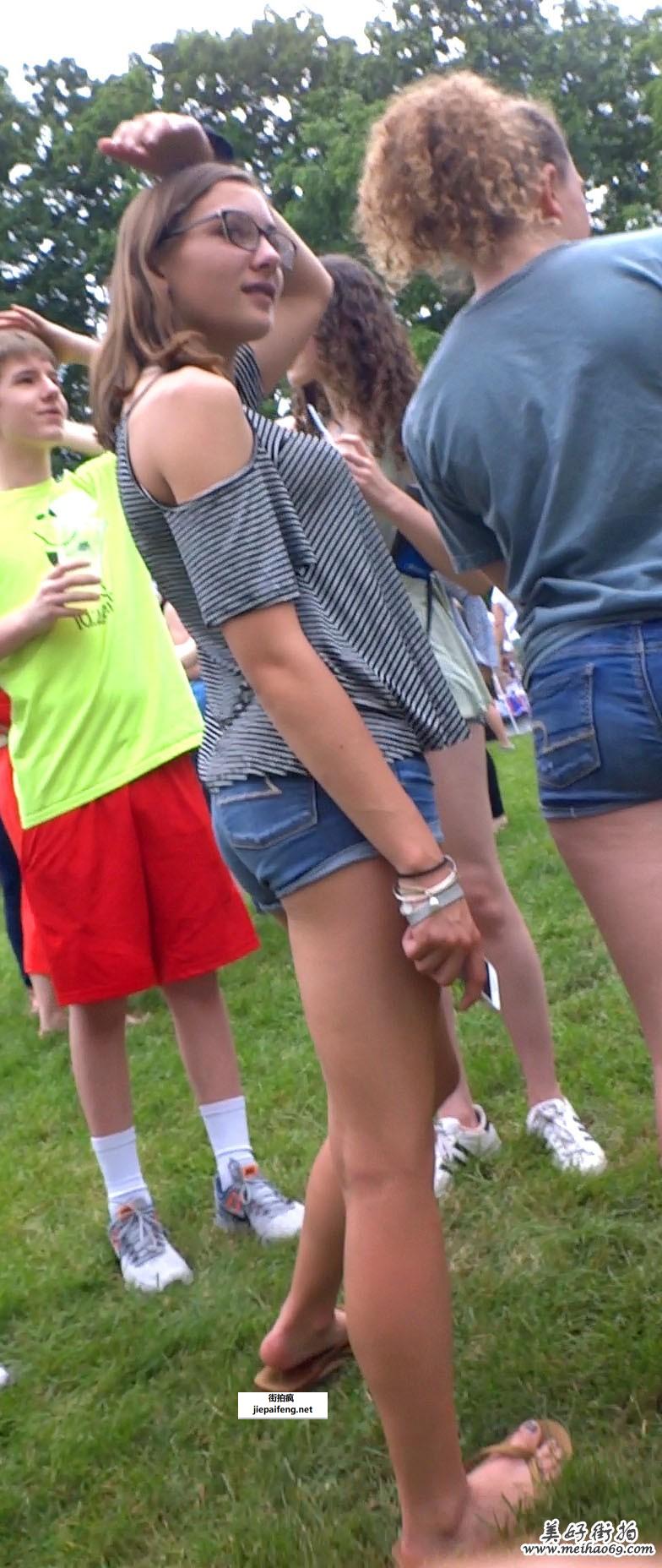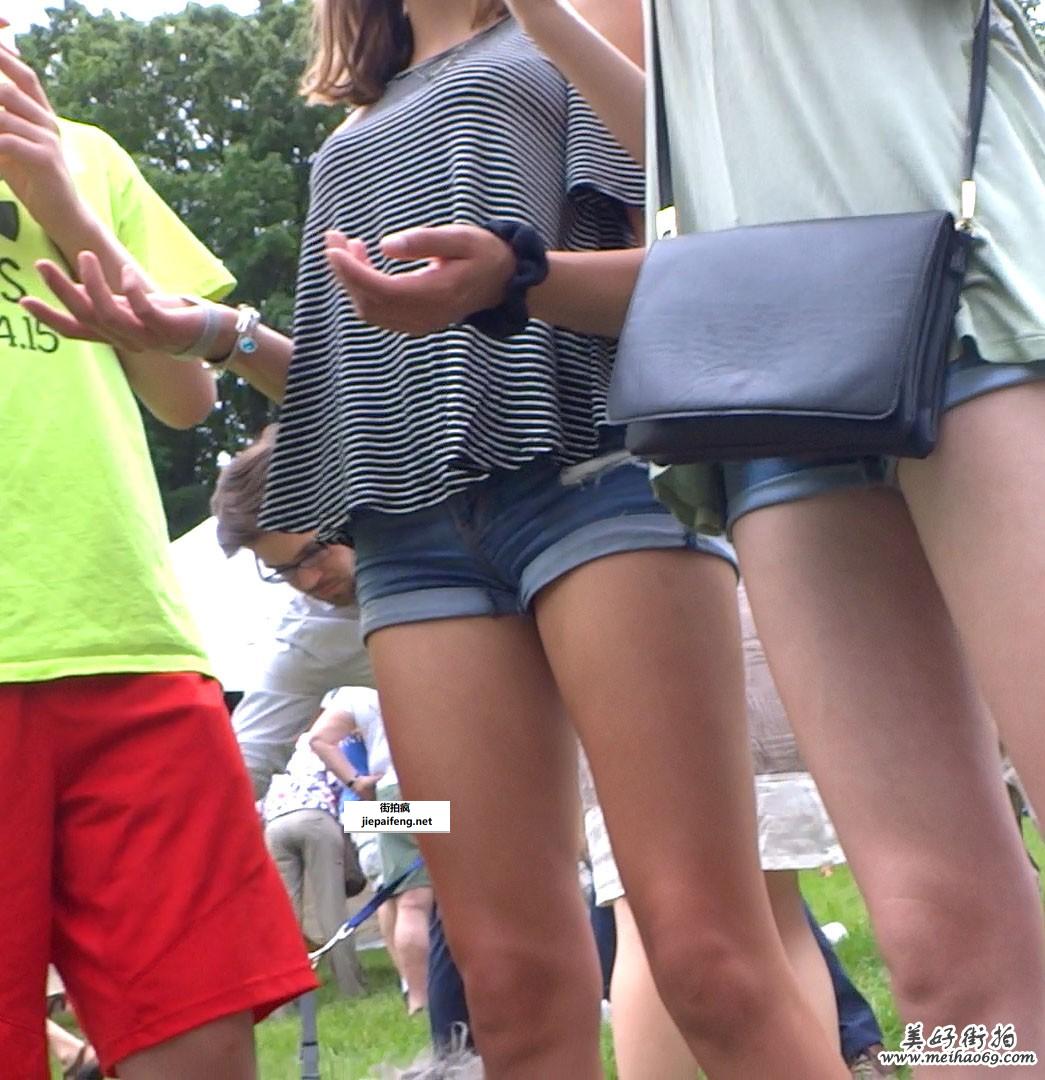 街拍蓝色牛仔短裤金发洋妞白腿翘臀[MP4/338M]