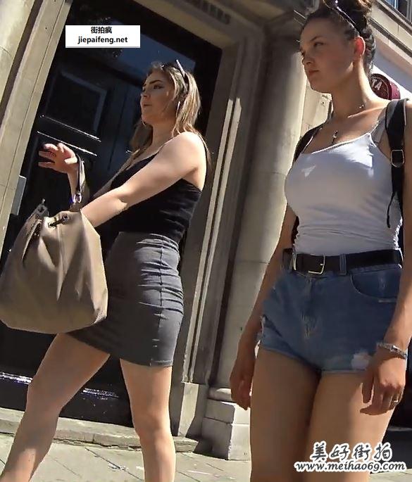 街拍蓝色牛仔热裤和灰色紧身包臀短裙洋妞极品翘臀[MP4/301M]