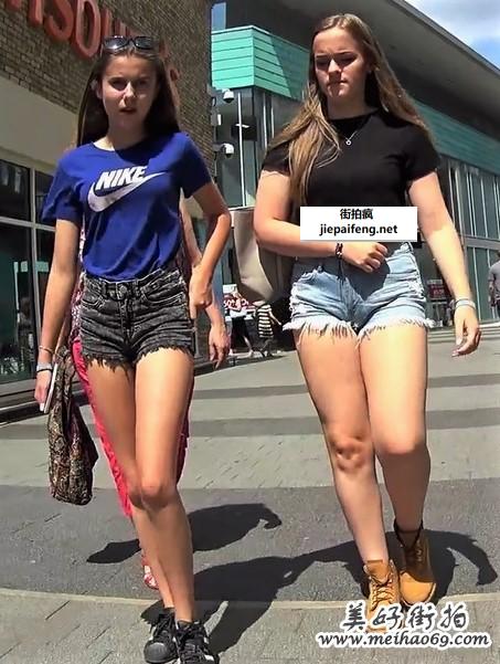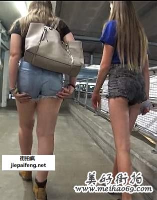 街拍两个牛仔热裤洋妞性感圆润翘臀[MP4/100M]