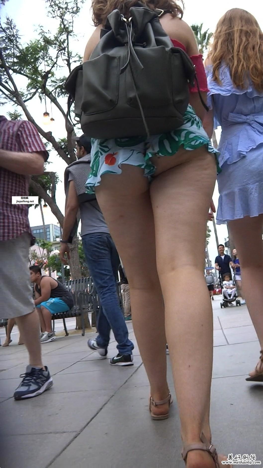 街拍丰满洋妞紧身休闲换热裤性感白腿圆润大屁股[MP4/2.01G]