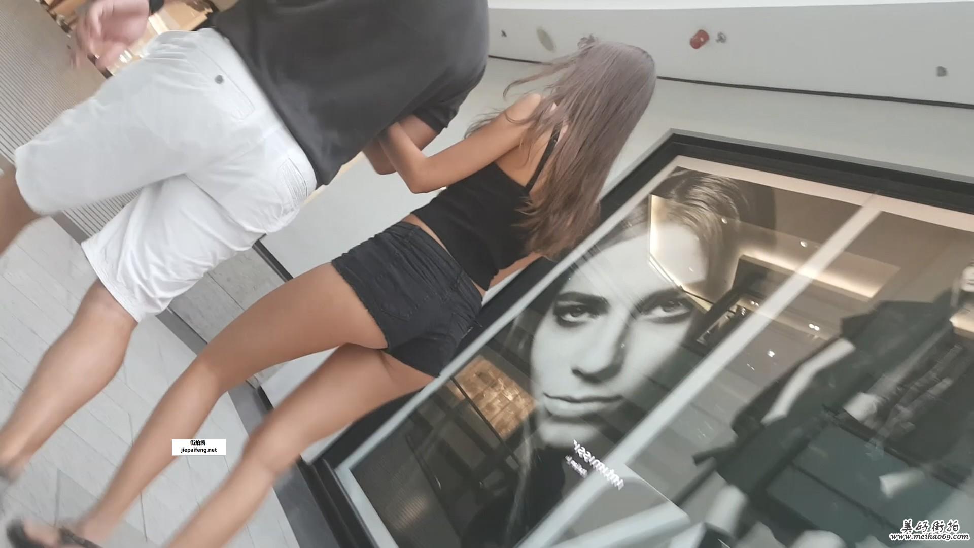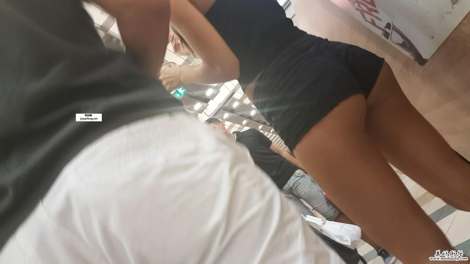 黑色牛仔热裤金发美眉性感圆润翘臀[MP4/492M]