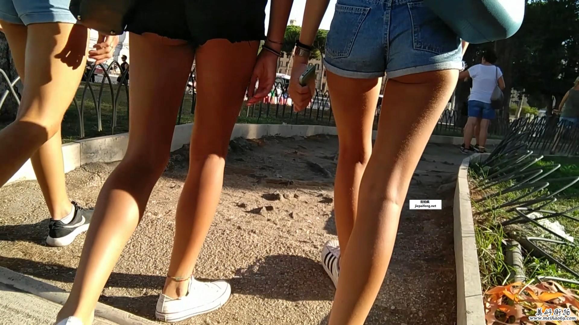街拍两个紧身牛仔热裤性感圆润翘臀洋妞[MP4/255M]