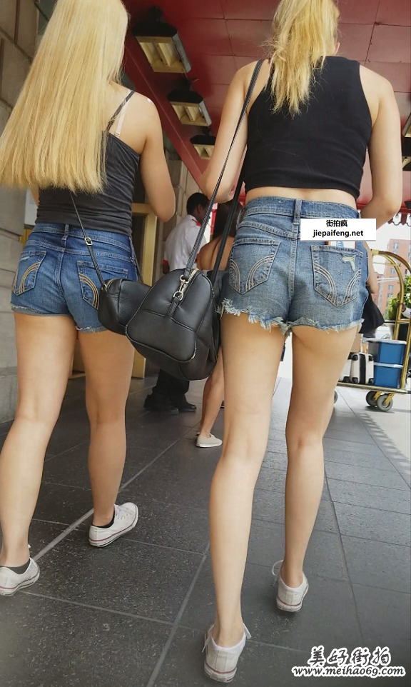 街拍三个蓝色牛仔短裤长发年轻美眉性感圆润翘臀[MP4/557M]