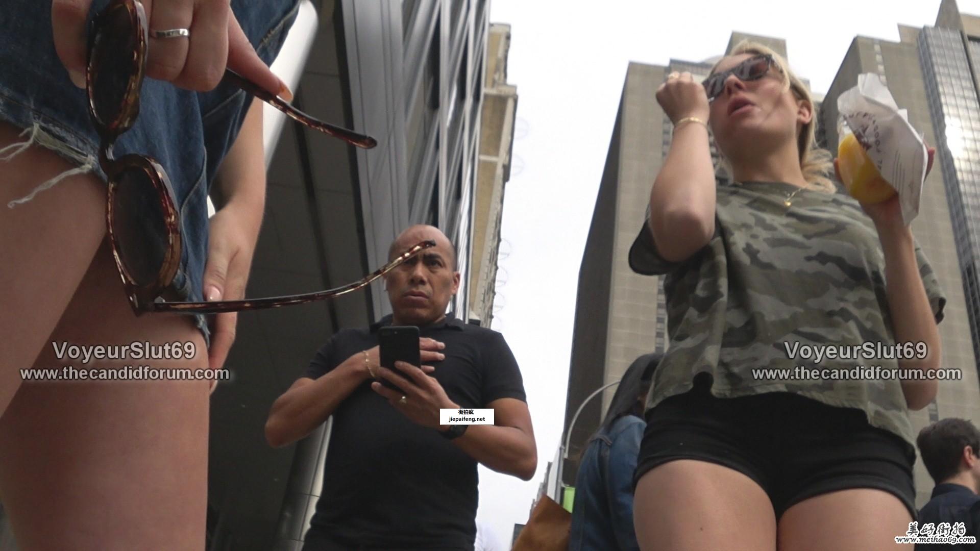 街拍蓝色牛仔包臀短裙金发洋妞饱满圆润翘臀[MP4/1.01G]