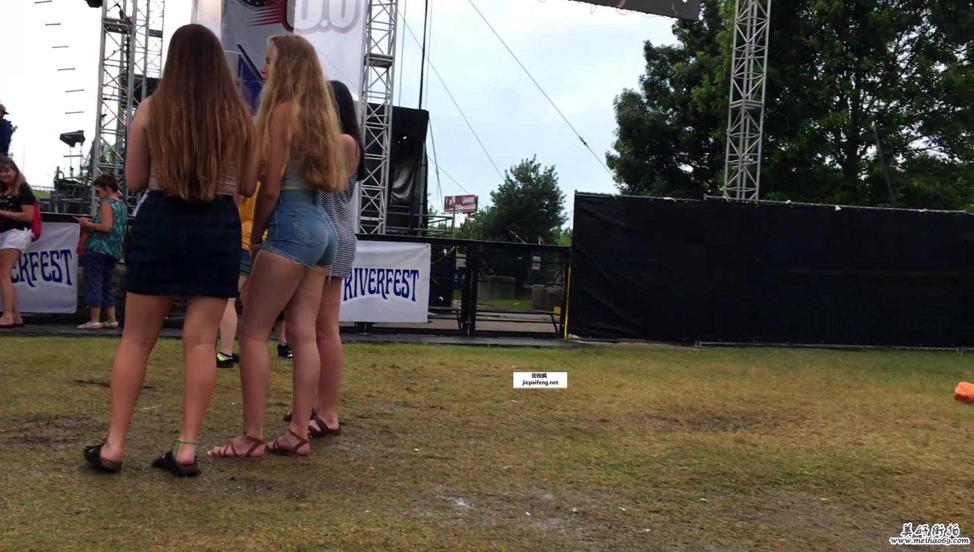 蓝色紧绷牛仔短裤金发洋妞极品圆润翘臀[MP4/285M]