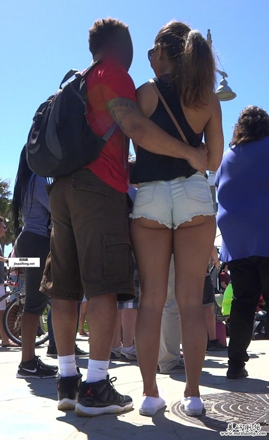 浅蓝牛仔热裤极品圆润翘臀洋妞和男友逛街[MP4/986M]
