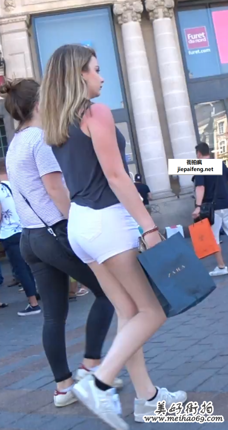 街拍白色紧绷牛仔短裤金发洋妞极品圆润翘臀[MP4/230M]