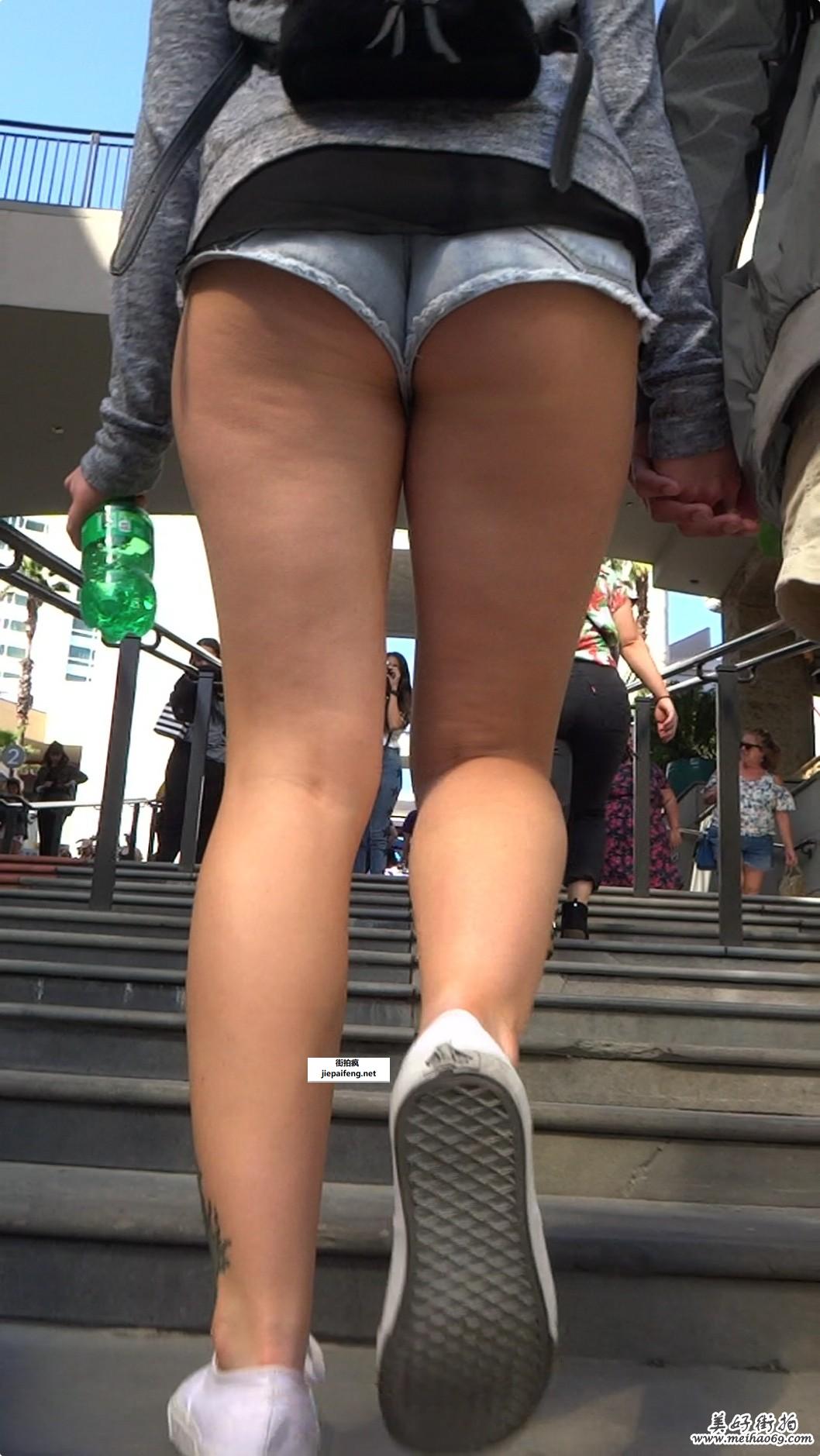 街拍牛仔热裤性感圆润翘臀背包洋妞[MP4/923M]