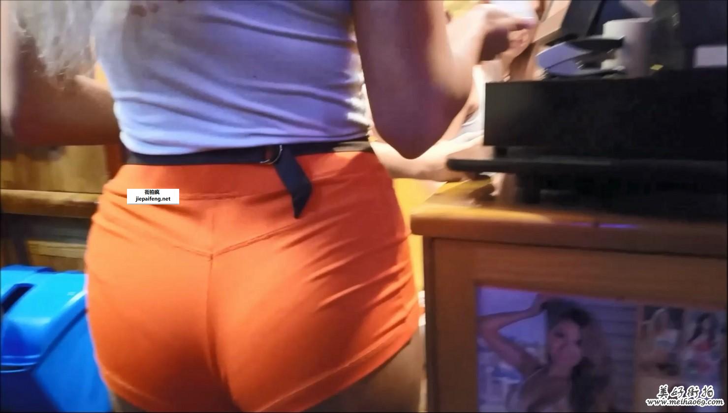 跟拍两个洋妞橙色紧绷热裤饱满圆润翘臀 2[MP4/58M]