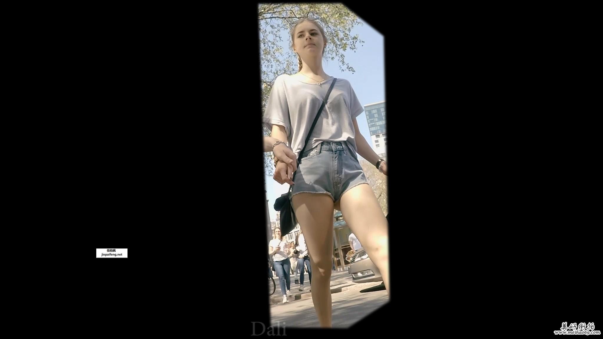 街拍浅蓝色牛仔热裤清新金发漂亮洋妞[MP4/105M]