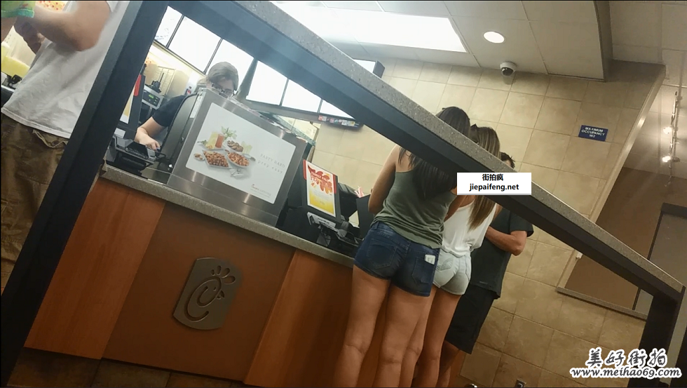 快餐店拍摄两个紧身牛仔短裤翘臀洋妞[MP4/288M]