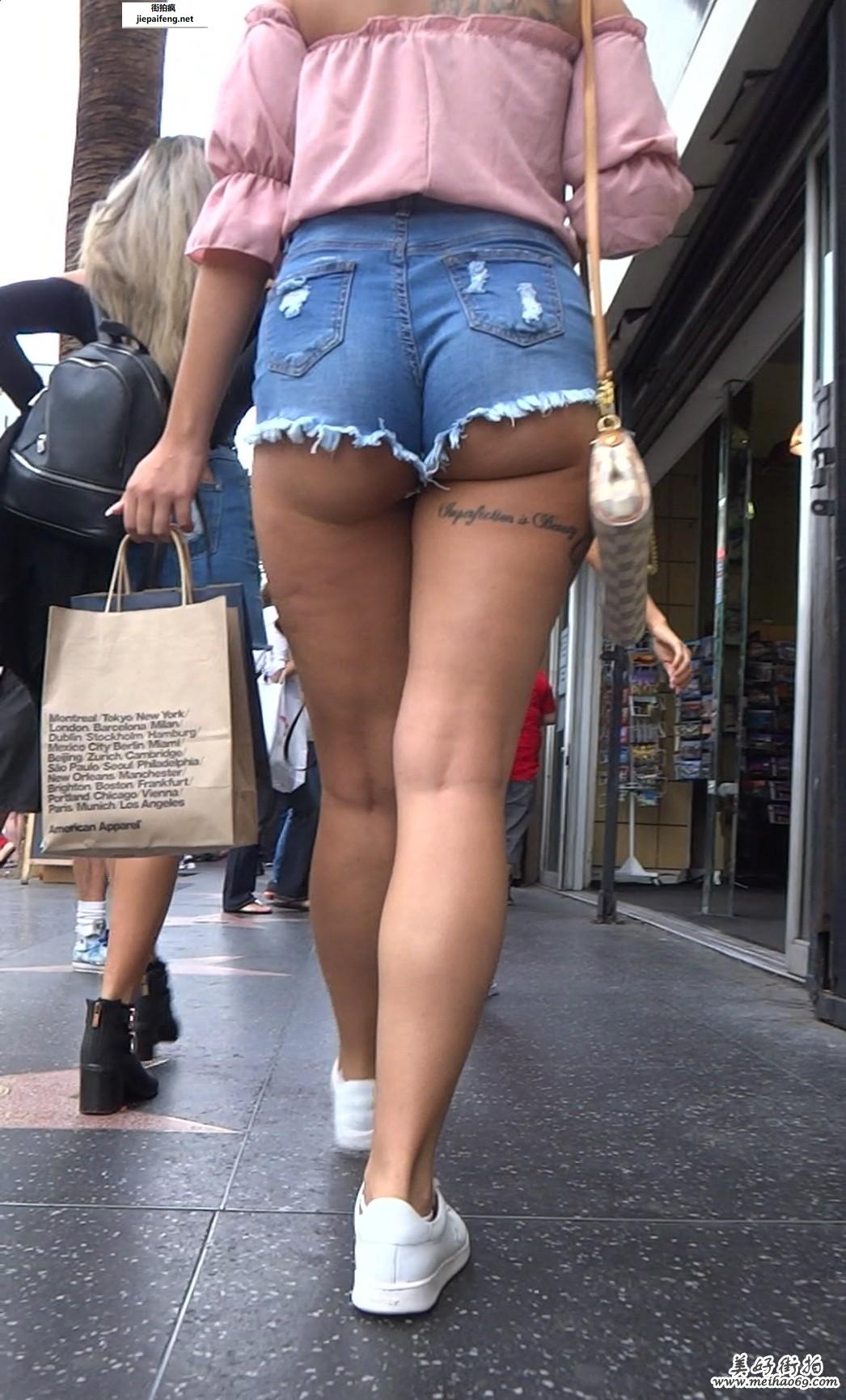 街拍蓝色牛仔热裤性感饱满圆润翘臀洋妞[MP4/1.03G]