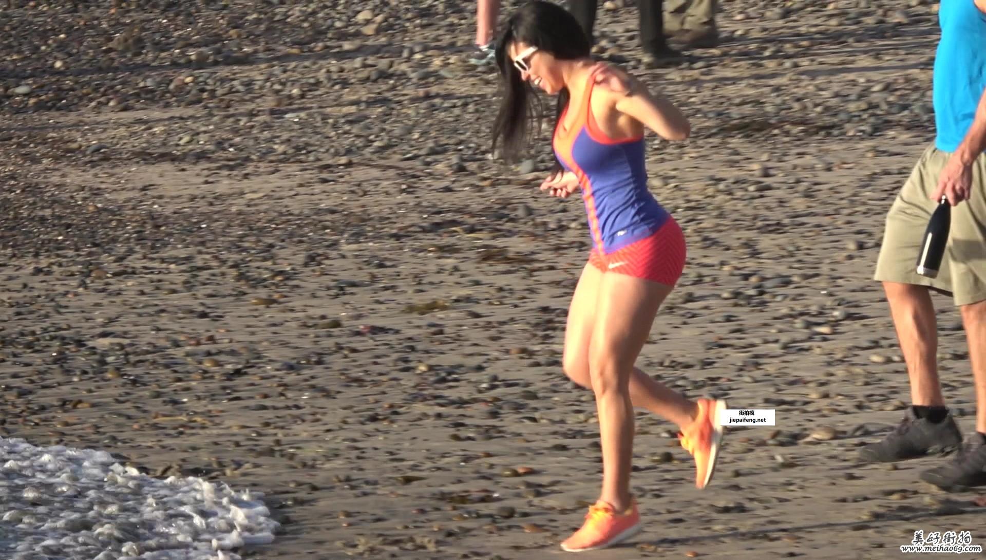 海边红色紧绷短裤性感饱满圆润翘臀美少妇[MP4/1.25G]