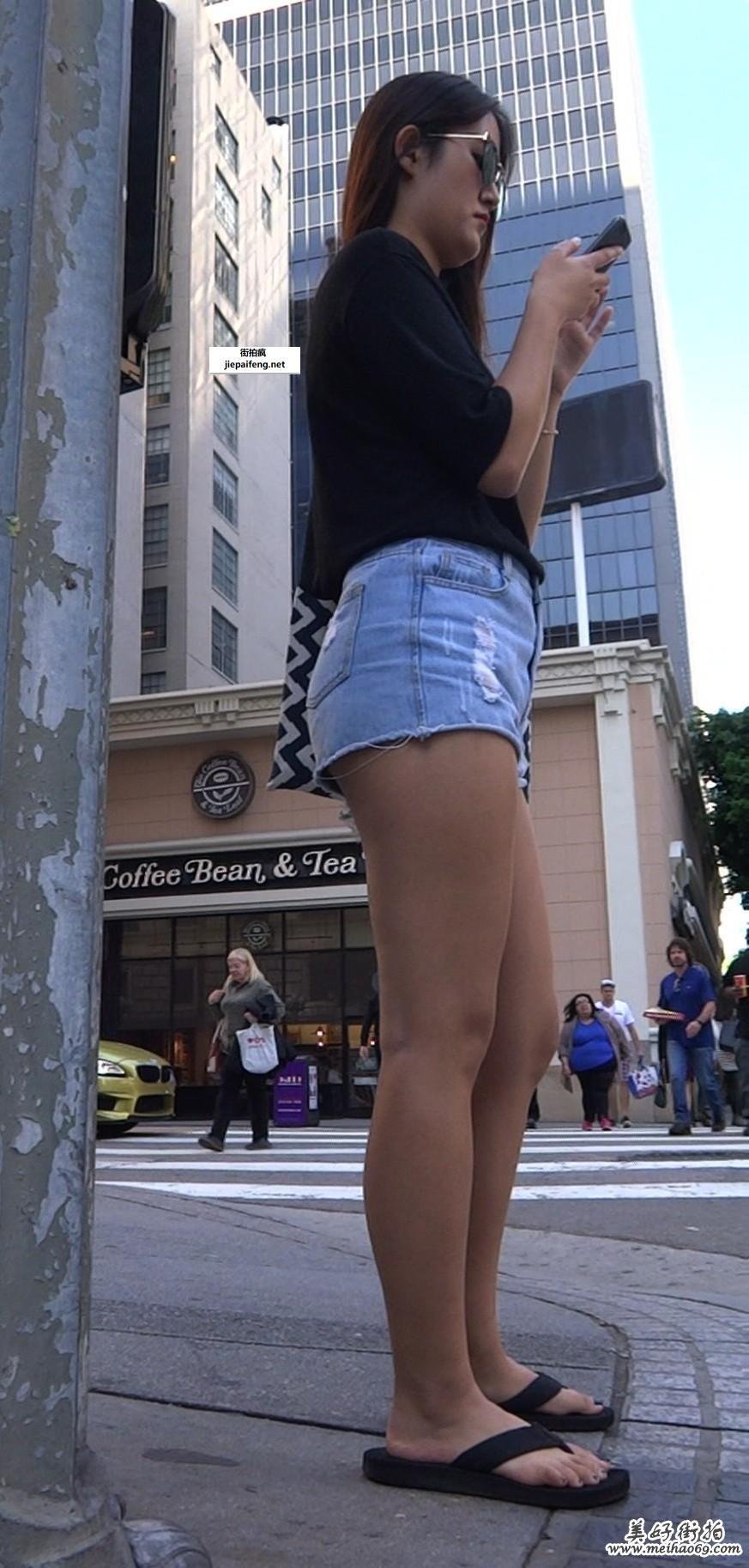 街拍身材高挑的蓝色牛仔热裤可爱亚洲长发美眉[MOV/1.33G]