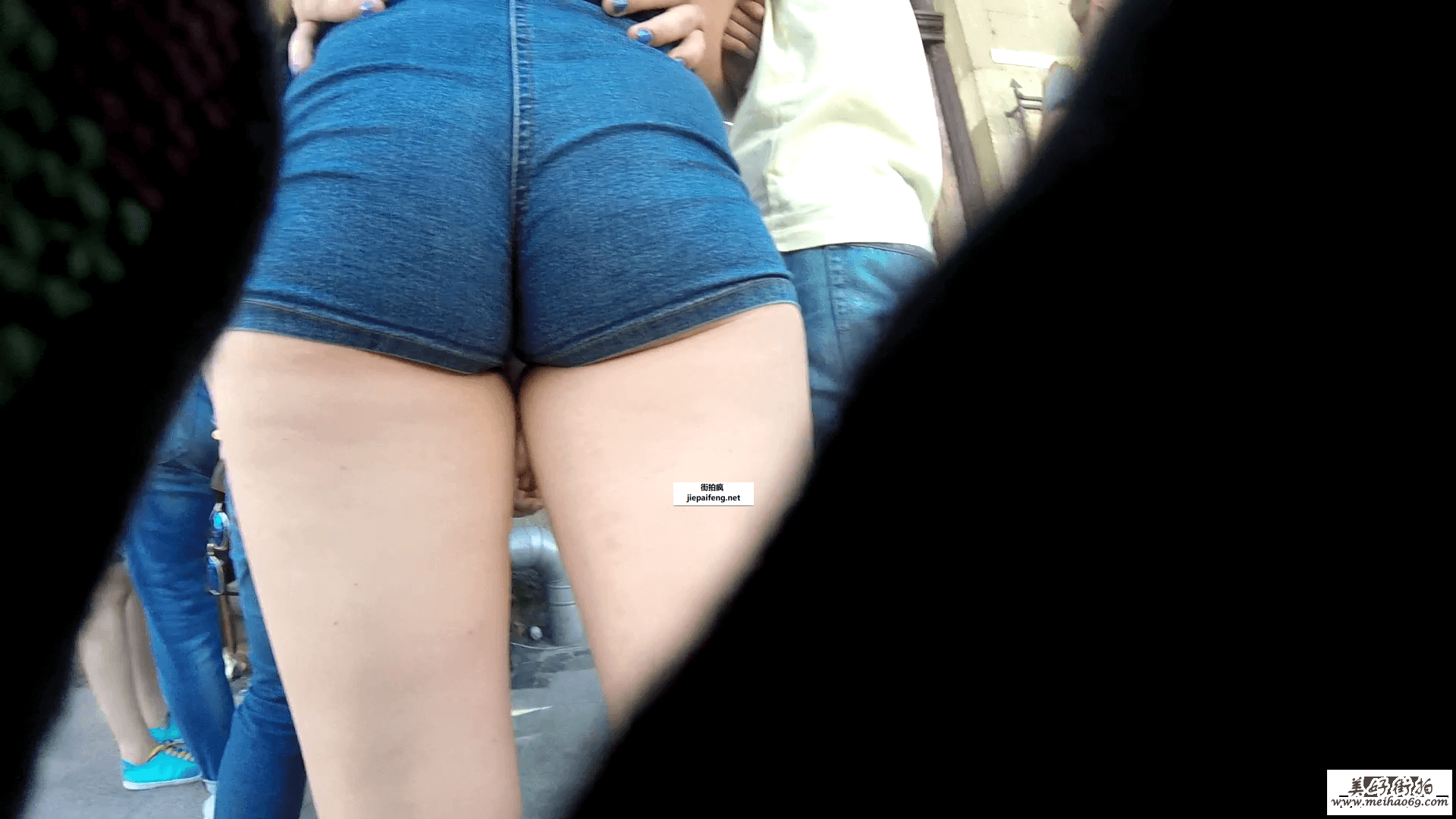 街拍洋妞紧绷蓝色牛仔热裤性感翘臀[MP4/78M]