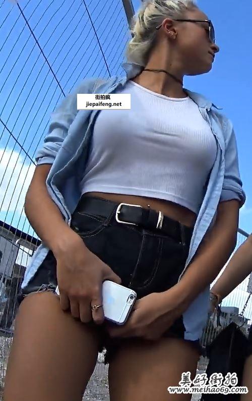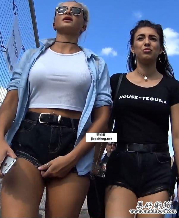 街拍两个牛仔热裤洋妞性感圆润翘臀[MP4/538M]