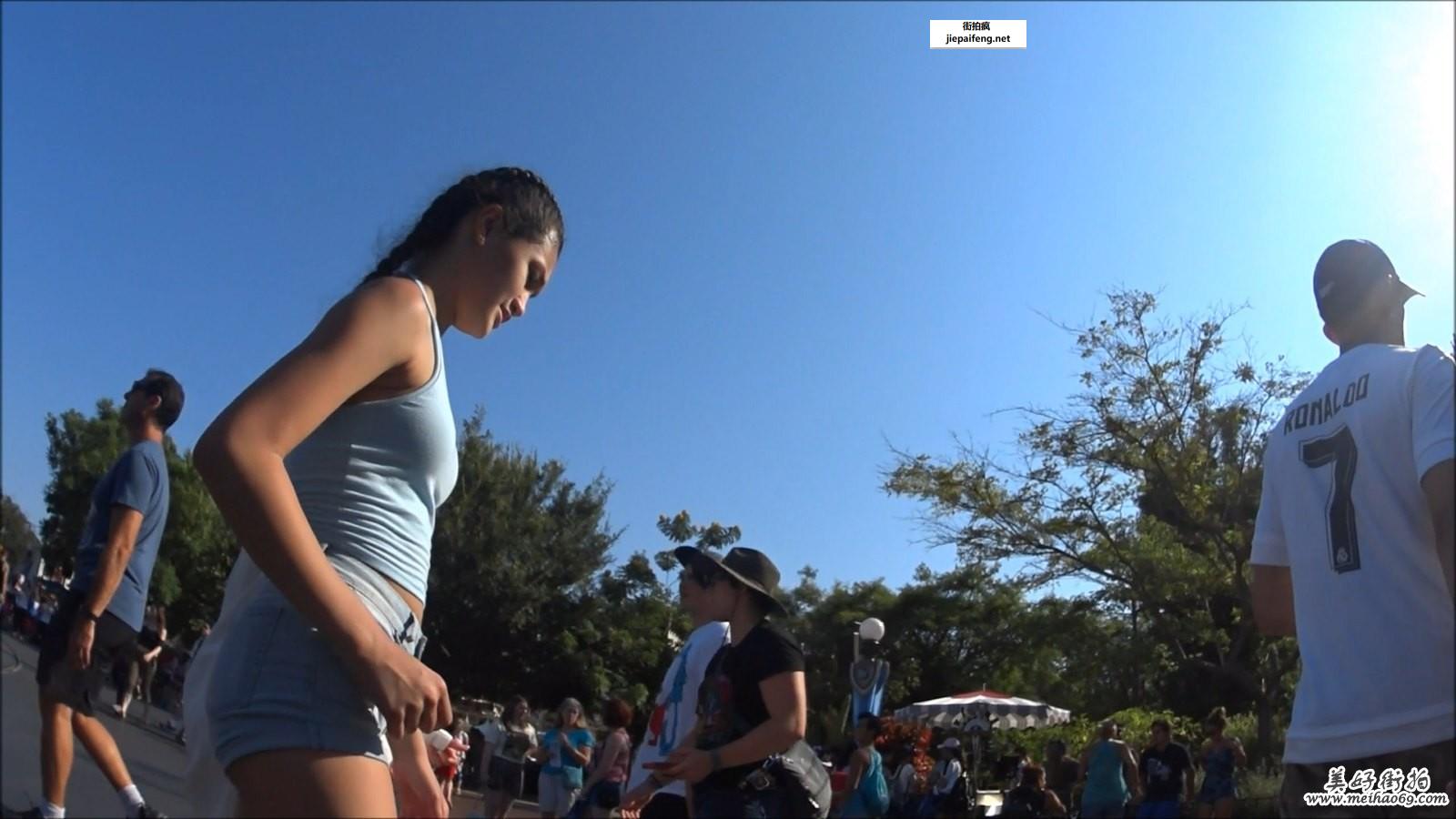 蓝色牛仔紧绷短裤极品翘臀洋妞[MP4/458M]