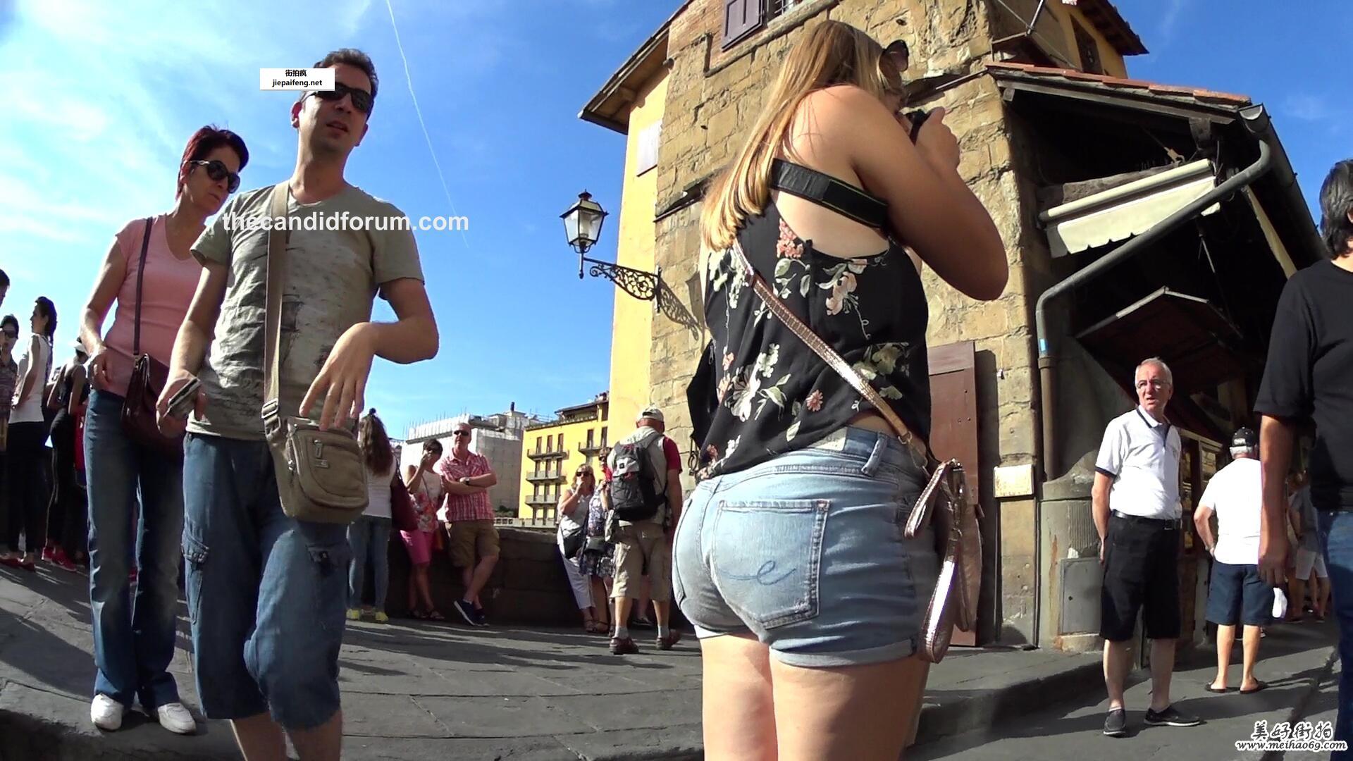街拍蓝色紧绷牛仔短裤洋妞饱满圆润大屁股[MP4/171M]