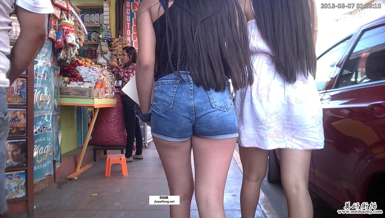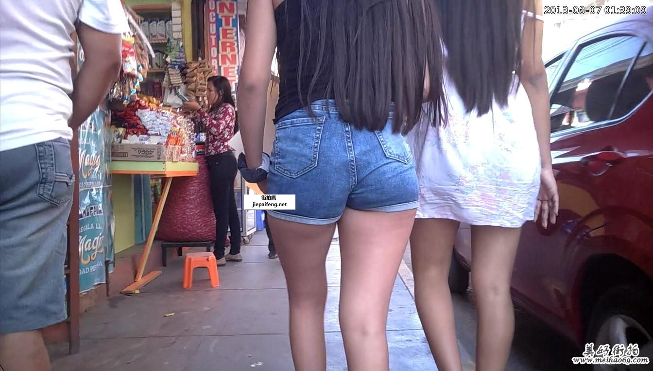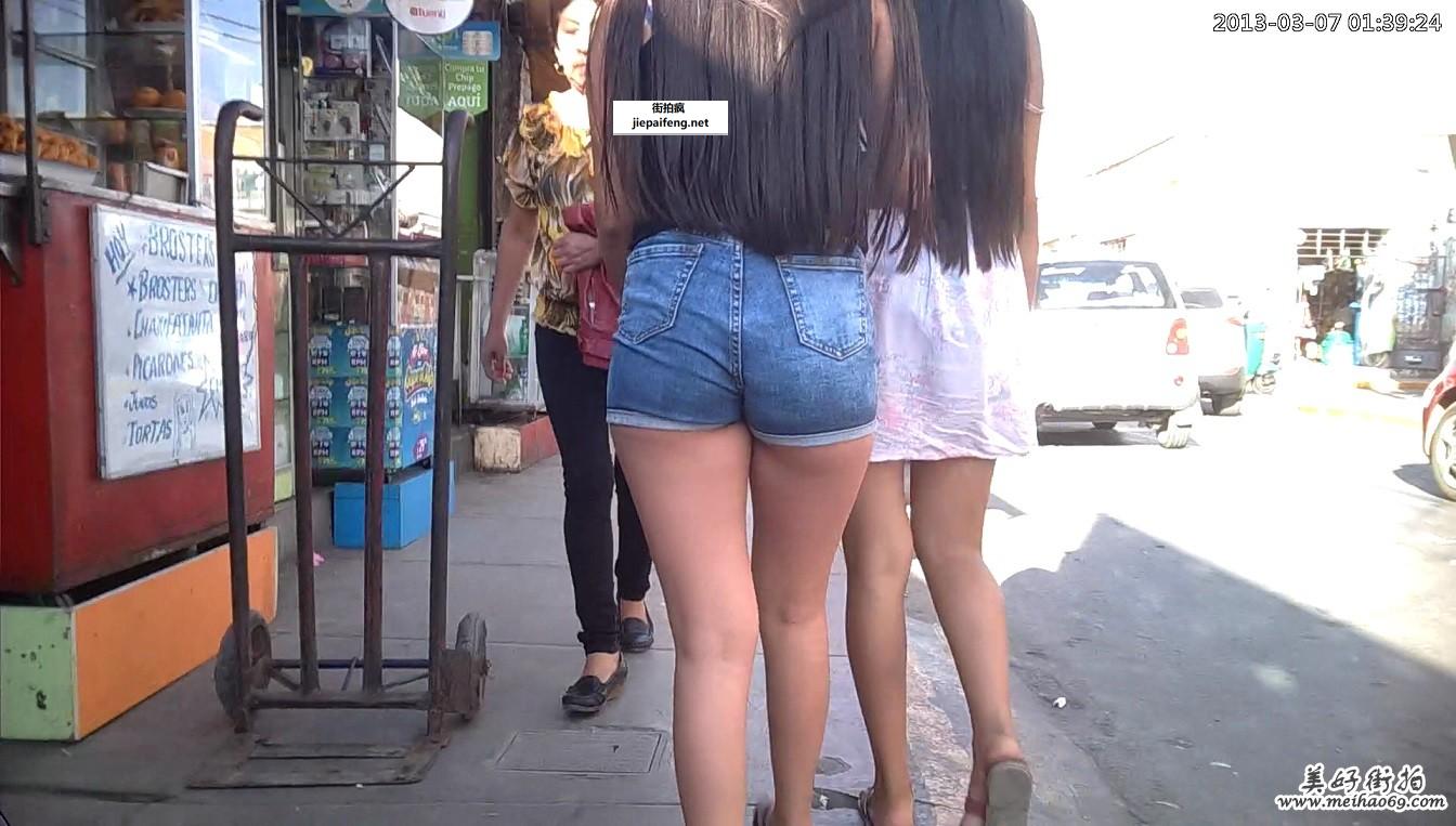 街拍蓝色牛仔短裤长发洋妞极品圆臀[MP4/66M]