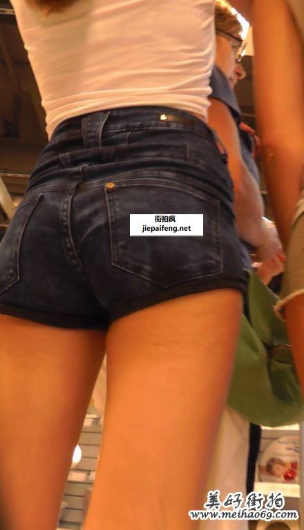 和妈妈一起在超市购物的紧绷牛仔短裤年轻美眉[MP4/273M]