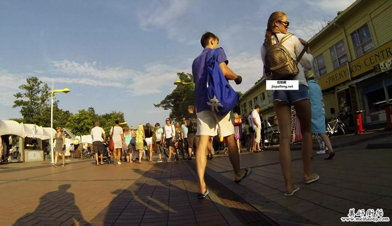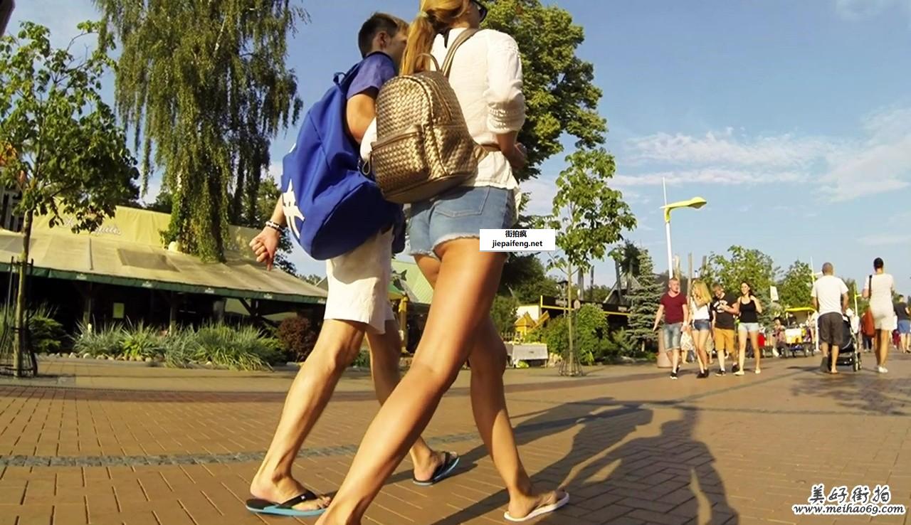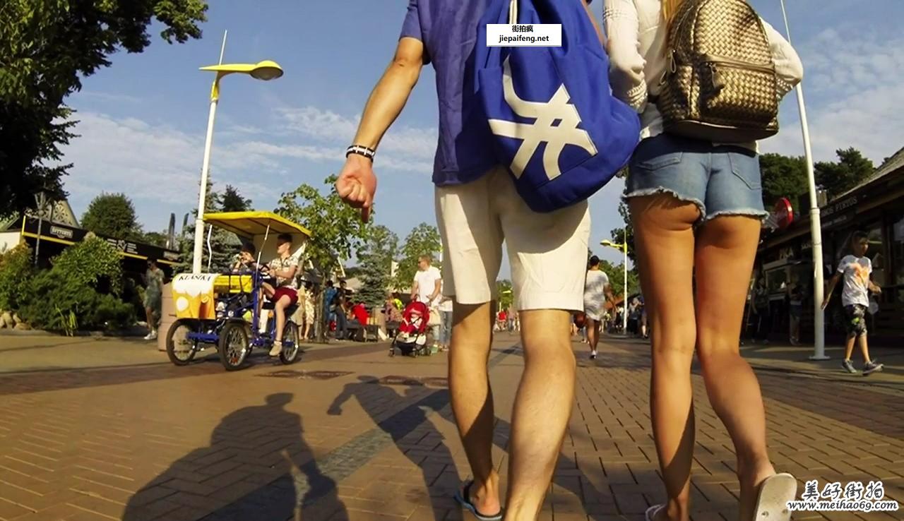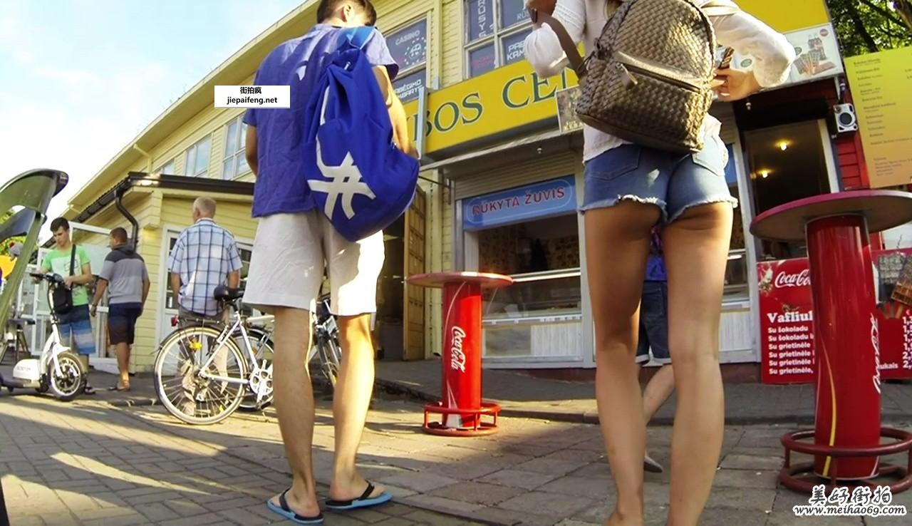 街拍极品长腿蓝色牛仔热裤性感翘臀金发洋妞[MP4/197M]